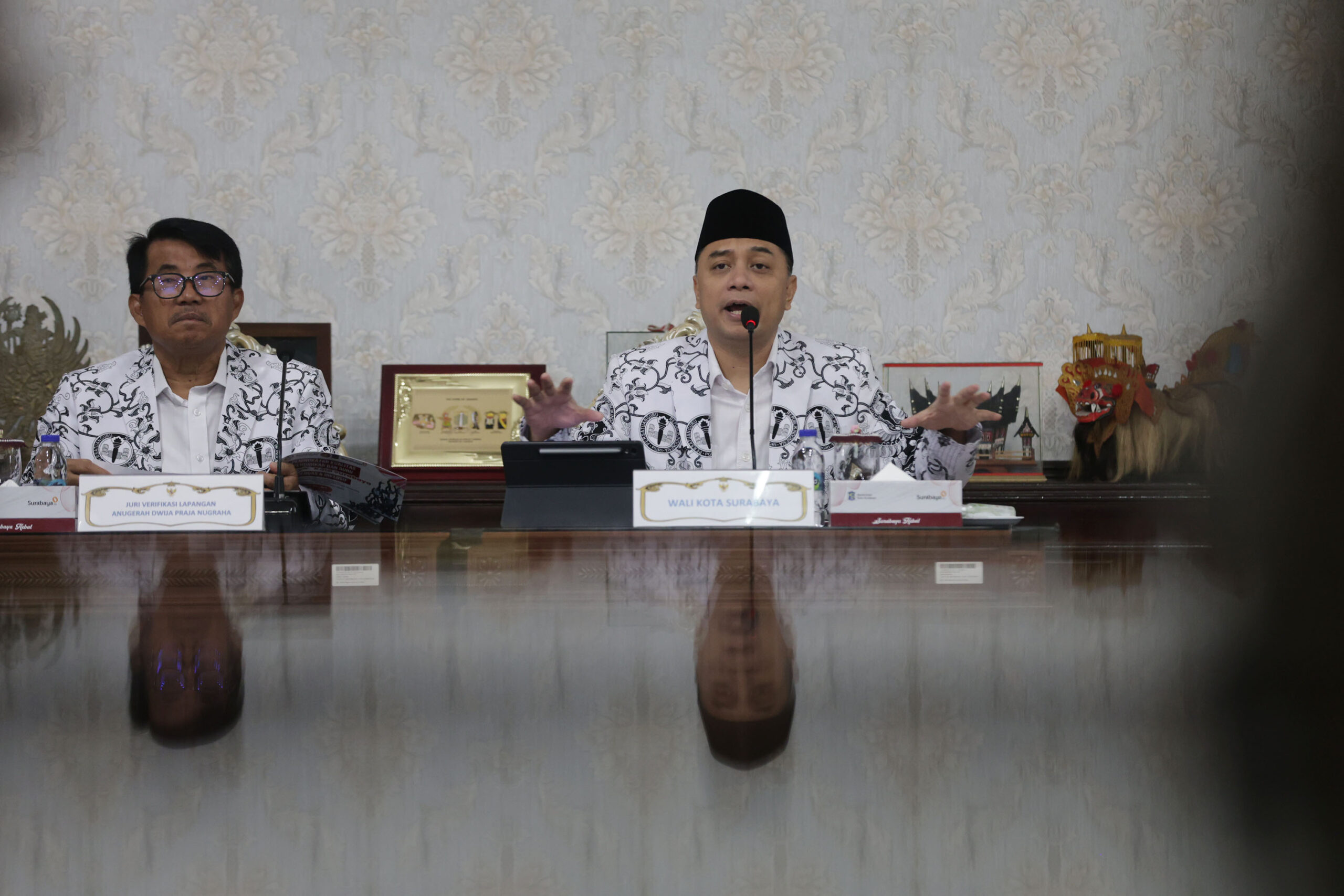 Surabaya, beritalima.com | Wali Kota Surabaya, Eri Cahyadi menerima kunjungan tim verifikasi Penghargaan Anugerah Dwija Praja Nugraha (DPN) Tahun 2025 dari Pengurus Besar Persatuan Guru Republik Indonesia (PGRI) di ruang sidang wali kota, Kamis (13/11/2025). Anugerah ini merupakan salah satu penghargaan bergengsi yang diberikan oleh Pengurus Besar PGRI kepada kepala daerah, yang memiliki komitmen tinggi dalam meningkatkan kualitas sumber daya manusia (SDM), pendidikan, serta kesejahteraan guru.