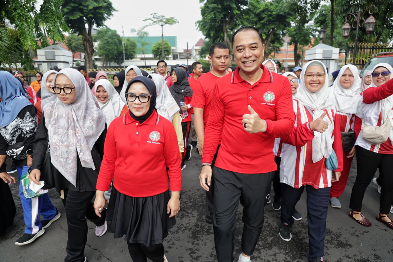 Dalam kesempatan ini, Wali Kota Surabaya Eri Cahyadi dan Bunda PAUD Kota Surabaya Rini Indriyani turut hadir menyemarakkan jalan sehat tersebut. Tidak hanya itu, hadir pula Kepala Dinas Pendidikan (Dispendik) Surabaya, Yusuf Masruh, Ketua PGRI Surabaya, Agnes Warsiati, hingga jajaran perangkat daerah (PD) di lingkungan Pemkot Surabaya.