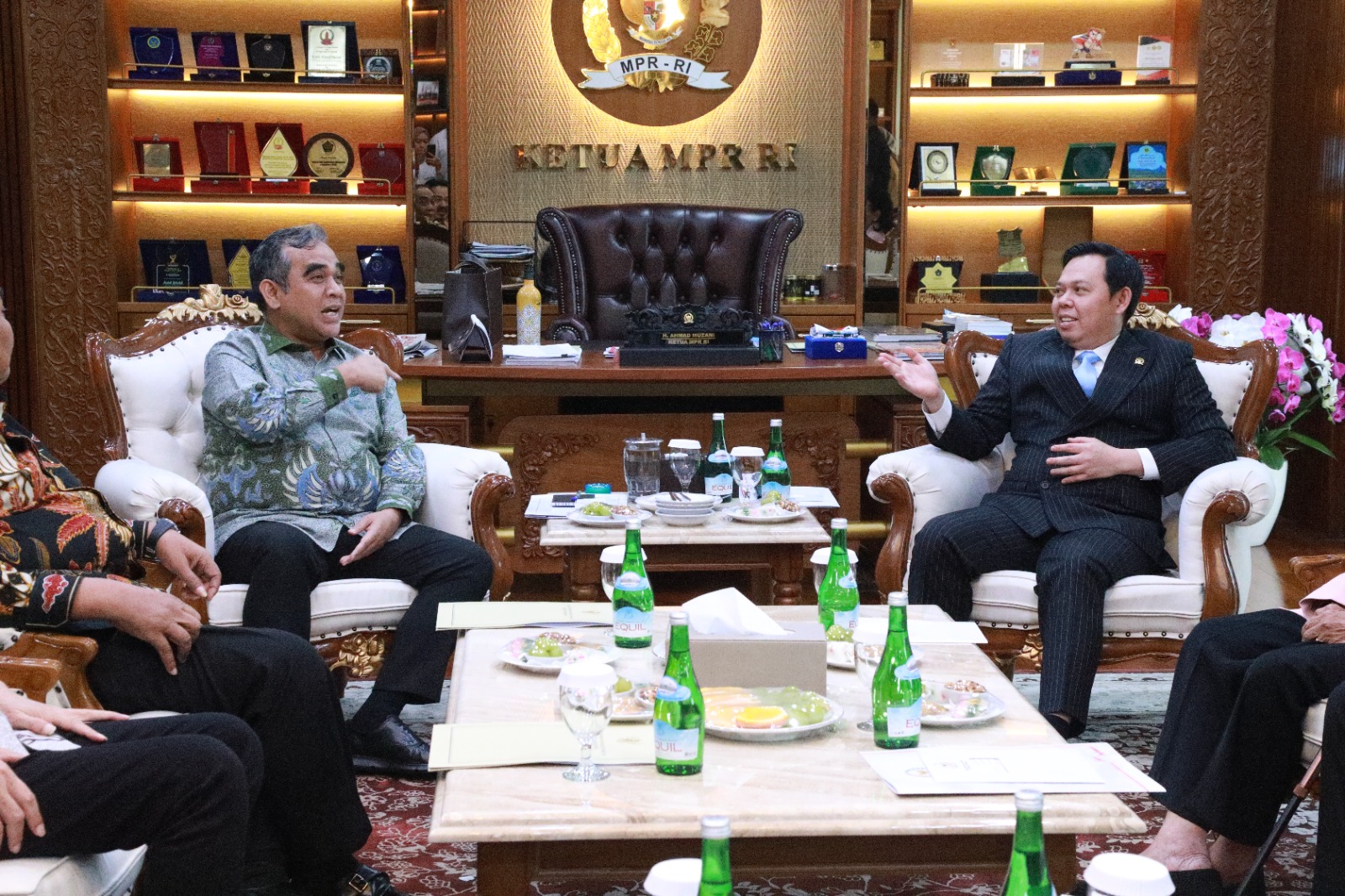Dihadapan Ketua MPR RI Ahmad Muzani dan jajarannya, Sultan menuturkan, tugas-tugas konstitusi diyakini dapat berjalan lancar dengan support system yang baik dan kolaboratif antara dua lembaga tinggi negara.