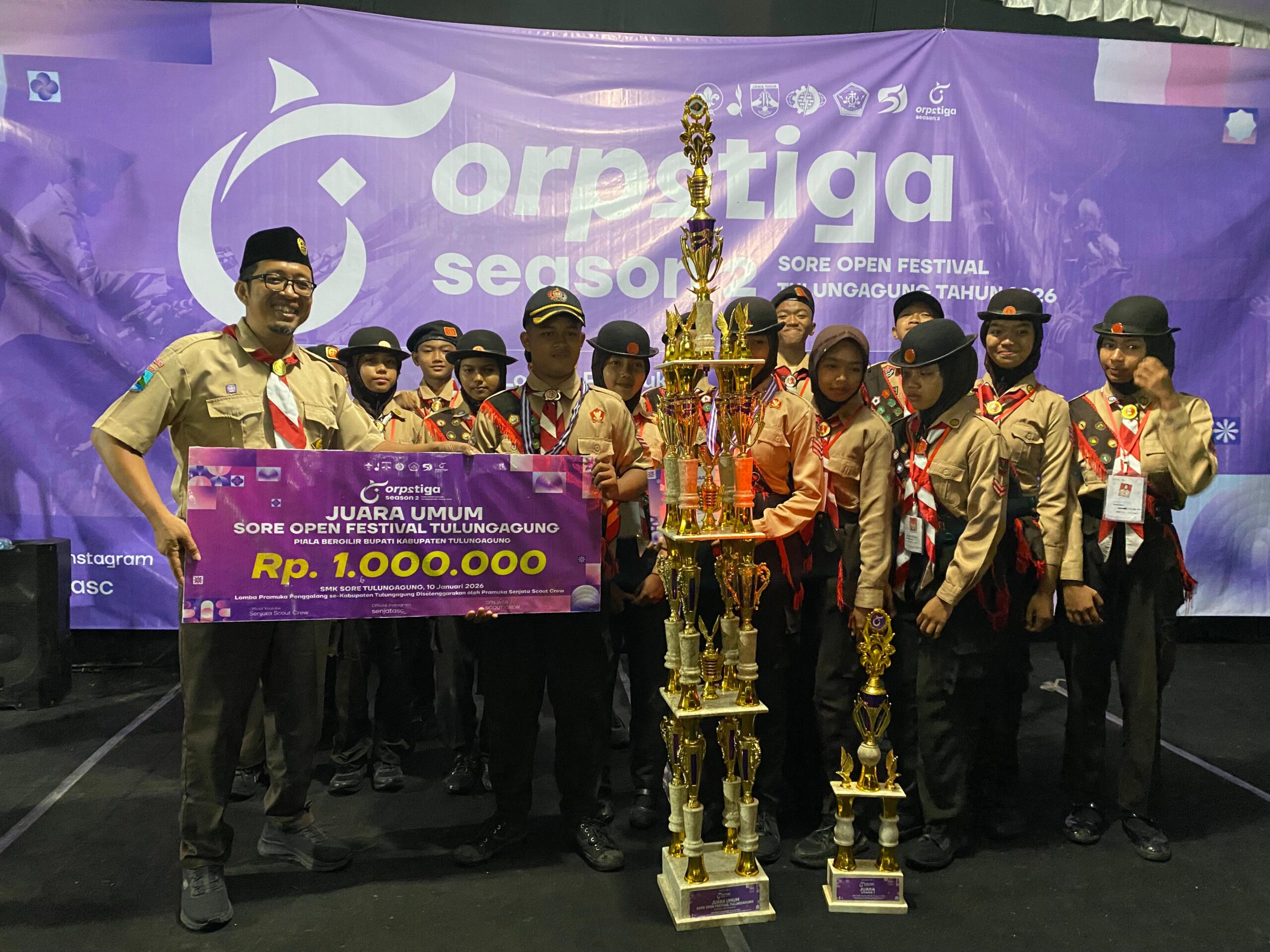 TULUNGAGUNG, beritalima.com- Prestasi membanggakan kembali ditorehkan siswa-siswi SMPN 1 Kedungwaru, Tulungagung, Jawa Timur, dalam ajang bergengsi lomba Pramuka Sore Open Festival atau ORPSTIGA Season II yang digelar oleh SMK Sore Tulungagung.