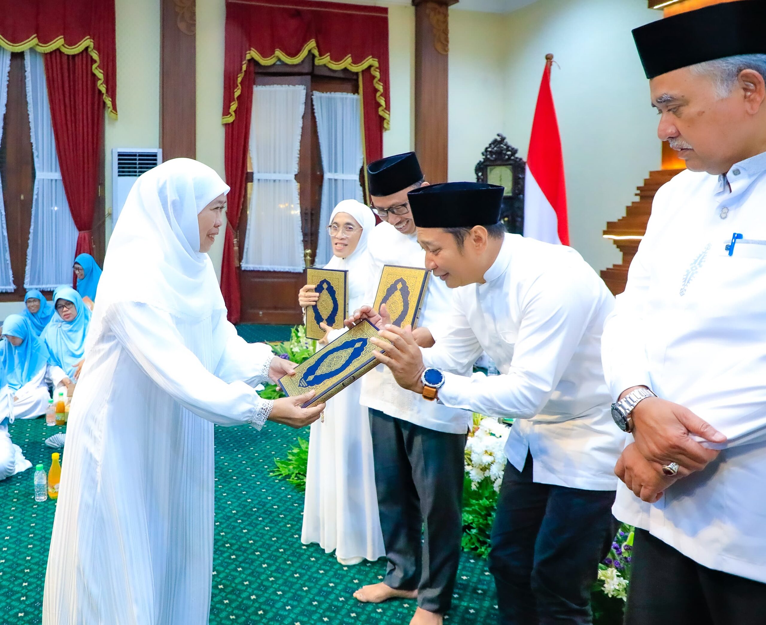 SURABAYA, beritalima.com | Gubernur Jawa Timur Khofifah Indar Parawansa menggelar kegiatan Khotmil Qur’an Ramadan 1447 Hijriah bersama jajaran Kepala Perangkat Daerah Pemerintah Provinsi Jawa Timur serta komunitas disabilitas tuli mengaji yang tergabung dalam Sobat Dili (Disabilitas Tuli Mengaji) di Gedung Negara Grahadi, Surabaya, Jumat (13/3/2026).