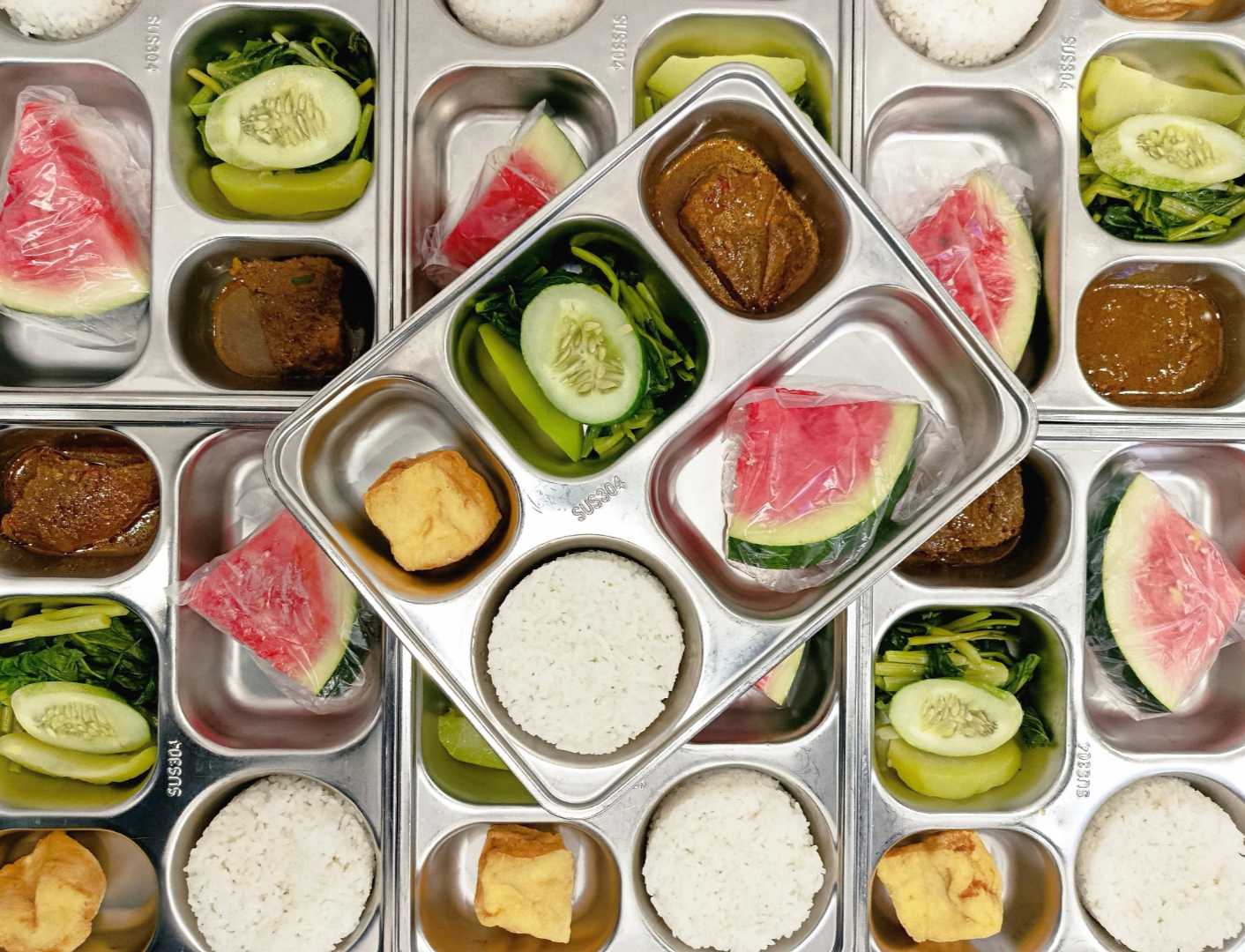 Selain semur daging, para siswa juga mendapatkan nasi putih, sayuran, serta buah semangka sebagai pelengkap gizi. Menu ini dirancang untuk memenuhi kebutuhan nutrisi harian anak-anak agar tetap sehat dan berenergi selama mengikuti kegiatan belajar.