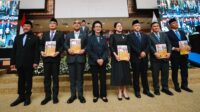 Foto 1: Direktur Keuangan Telkom Harry M. Zen (tengah) menerima penghargaan BUMN Terbaik 2016 yang diserahkan oleh CEO Berita Satu HoldingSinyo Harry Sarundajang (kiri) didampingi oleh Friderica Widyasari (kanan) di Jakarta,Kamis (15/12).
