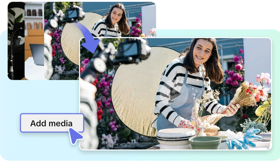 Masuk ke platform AI Ubah Foto Jadi Video dan masuk ke bagian “Pembuat video.” Tekan tombol “Tambahkan media” untuk mengunggah foto acara kamu.