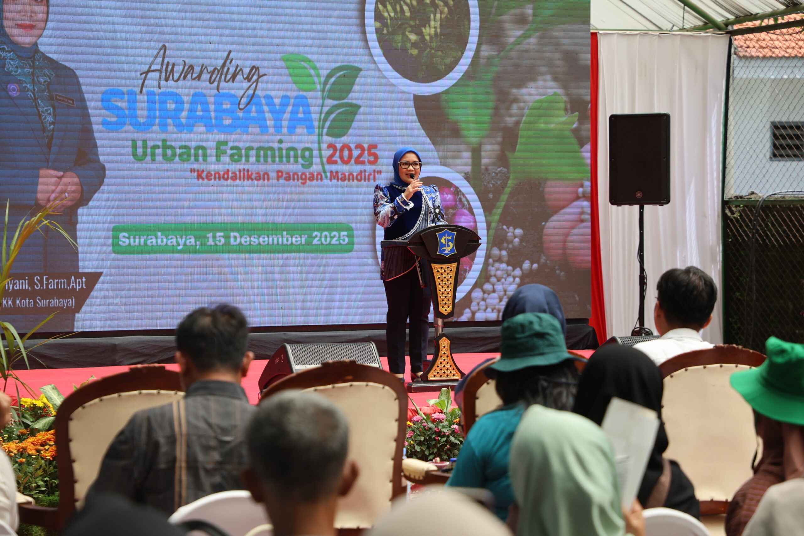 Surabaya, beritalima.com | Pemerintah Kota (Pemkot) Surabaya menggelar Penganugerahan Surabaya Urban Farming Competition 2025, pada Senin (15/12/2025). Penganugerahan ini digelar di halaman kantor Dinas Ketahanan Pangan dan Pertanian (DKPP) Kota Surabaya.