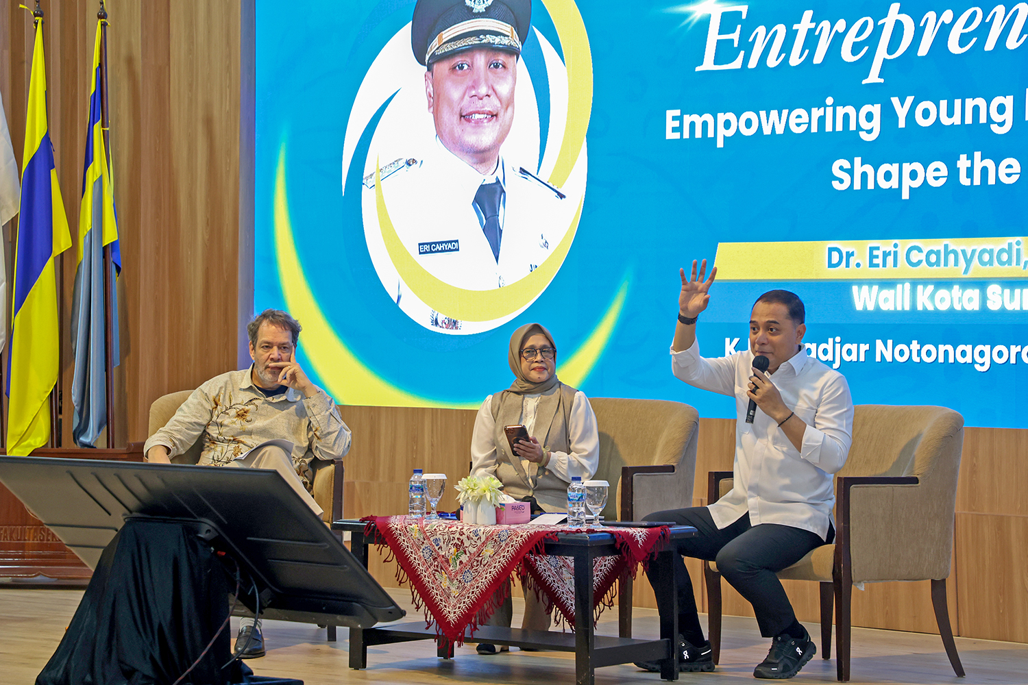 “Karena kehidupan di luar kampus itu ternyata lebih kejam dan lebih berat. Maka kita harus punya jiwa yang kuat, kita haru tahu betul-betul bagaimana masa depan dunia kerja yang ada di hadapan kita,” kata Wali Kota Eri di ruang K.R.T Fadjar Notonegoro FEB UNAIR.