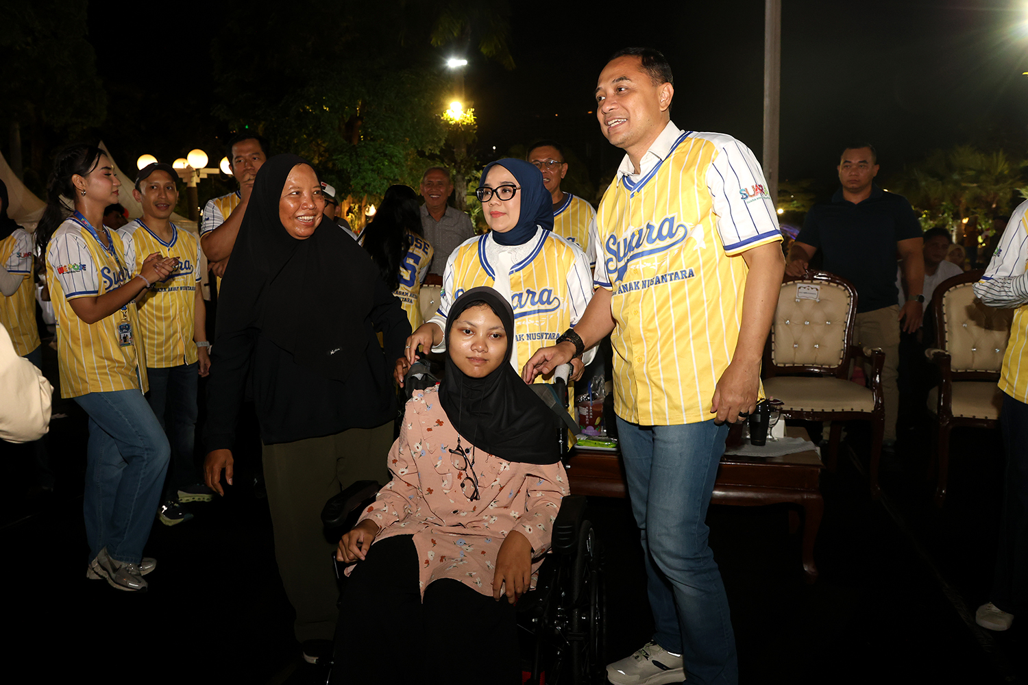 Surabaya, beritalima.com | Wali Kota Surabaya Eri Cahyadi mengajak generasi muda Kota Pahlawan untuk lebih aktif berkarya dan terlibat dalam kegiatan organisasi. Pesan tersebut ia sampaikan saat menghadiri puncak acara Suara Anak Nusantara 2025 bertajuk “Youth In Action For Unity” di Taman Surya Balai Kota Surabaya, Minggu (30/11/2025) malam.