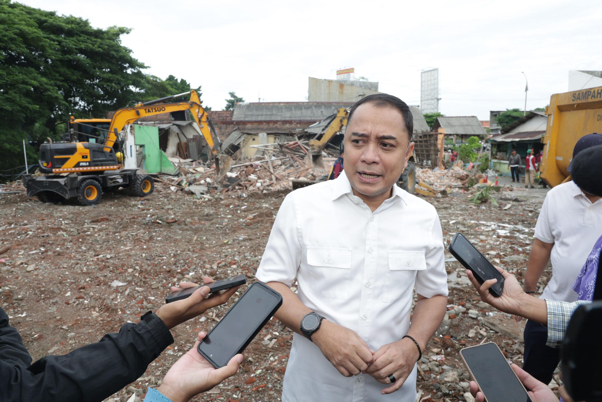 Wali Kota Surabaya Eri Cahyadi meninjau langsung proses pembongkaran bangunan bekas rumah warga di kawasan tersebut, Kamis (15/1/2026) pagi. Ia memastikan seluruh bangunan akan diratakan dalam waktu maksimal dua hari sebagai bagian dari percepatan pembangunan infrastruktur strategis tersebut.