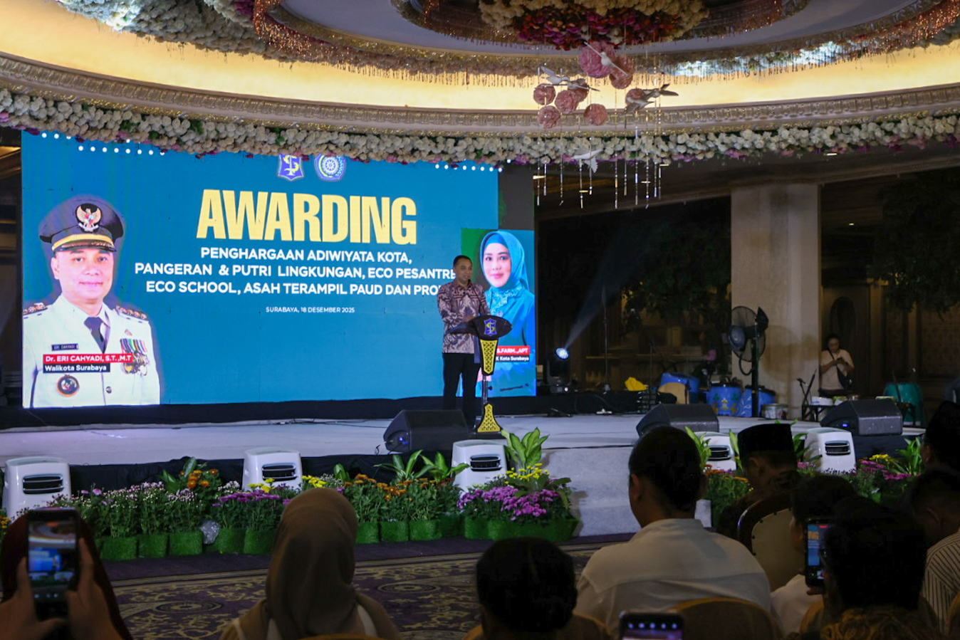 Wali Kota Surabaya Eri Cahyadi menegaskan bahwa kebersihan lingkungan adalah cerminan iman dan karakter seseorang. Hal ini dibuktikan dengan keberhasilan 30 sekolah di Surabaya meraih penghargaan Adiwiyata, terdiri dari 8 Sekolah Adiwiyata Mandiri dan 22 Sekolah Adiwiyata Nasional yang menjadi bukti kuat pentingnya pendidikan lingkungan sejak usia dini.
